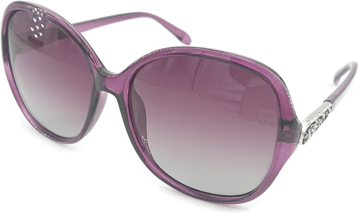 Produkt id. Dame-solbriller-kaleu-lux-polariserede-uv400-linser-antirefleks-lilla-stel-med-sølvmønster-inkl-etui-pudseklud